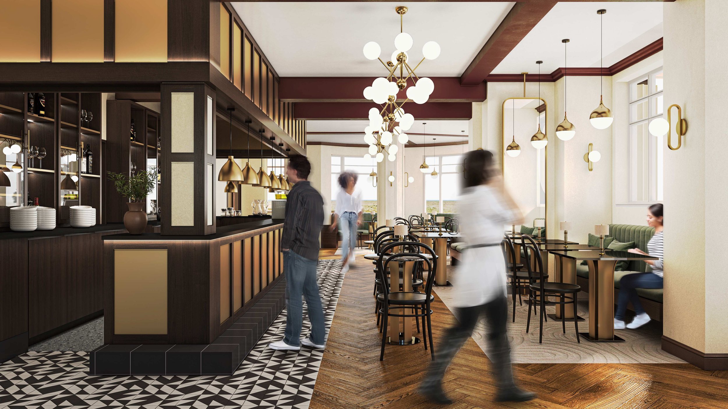 On the ground floor Zaks will create a pub in one of the two original bars serving local beers from Lacons Brewery and cocktails with a nod to the 1930’s period. The other bar will become a restaurant where food will be cooked in view of the customers. Both bars will have an art deco aesthetic which has been developed through researching the historic archives and input from conservation paint consultants.