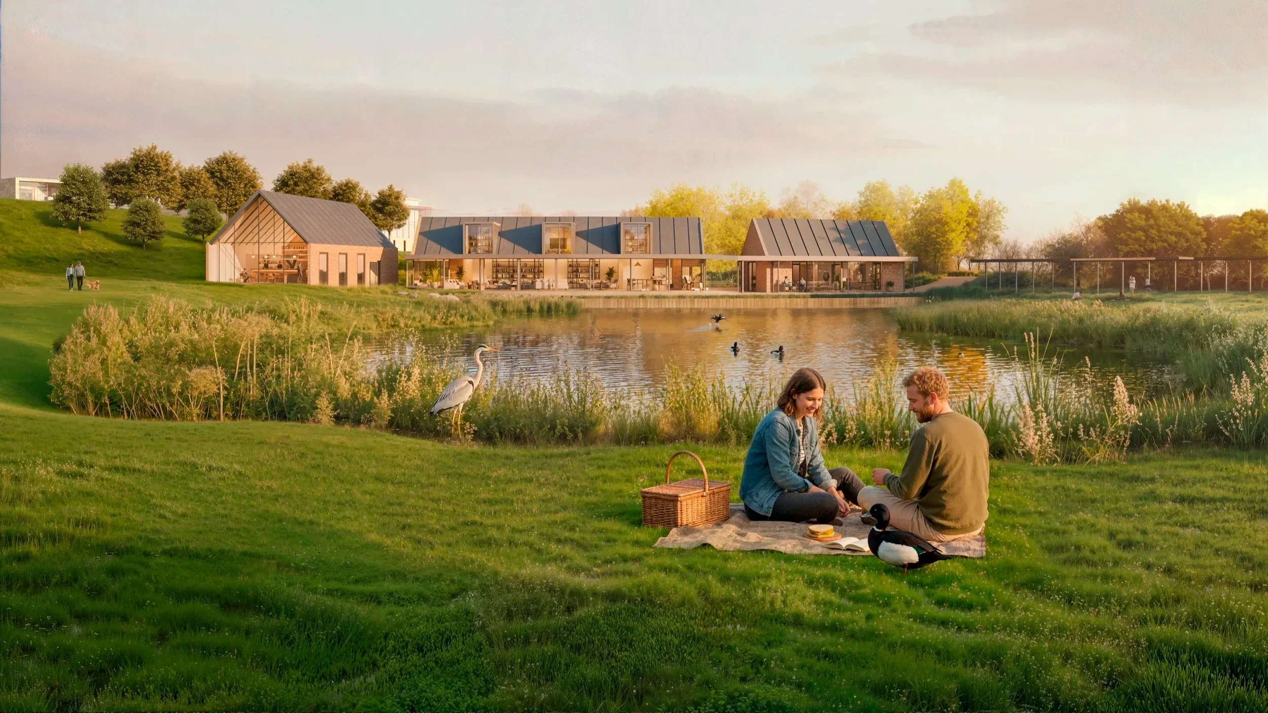 New wetland features like those at Stratfield Brake will be provided within the park and integrated with a community cafe, hall, and public WC facilities at the site's western edge near Oxford Canal.