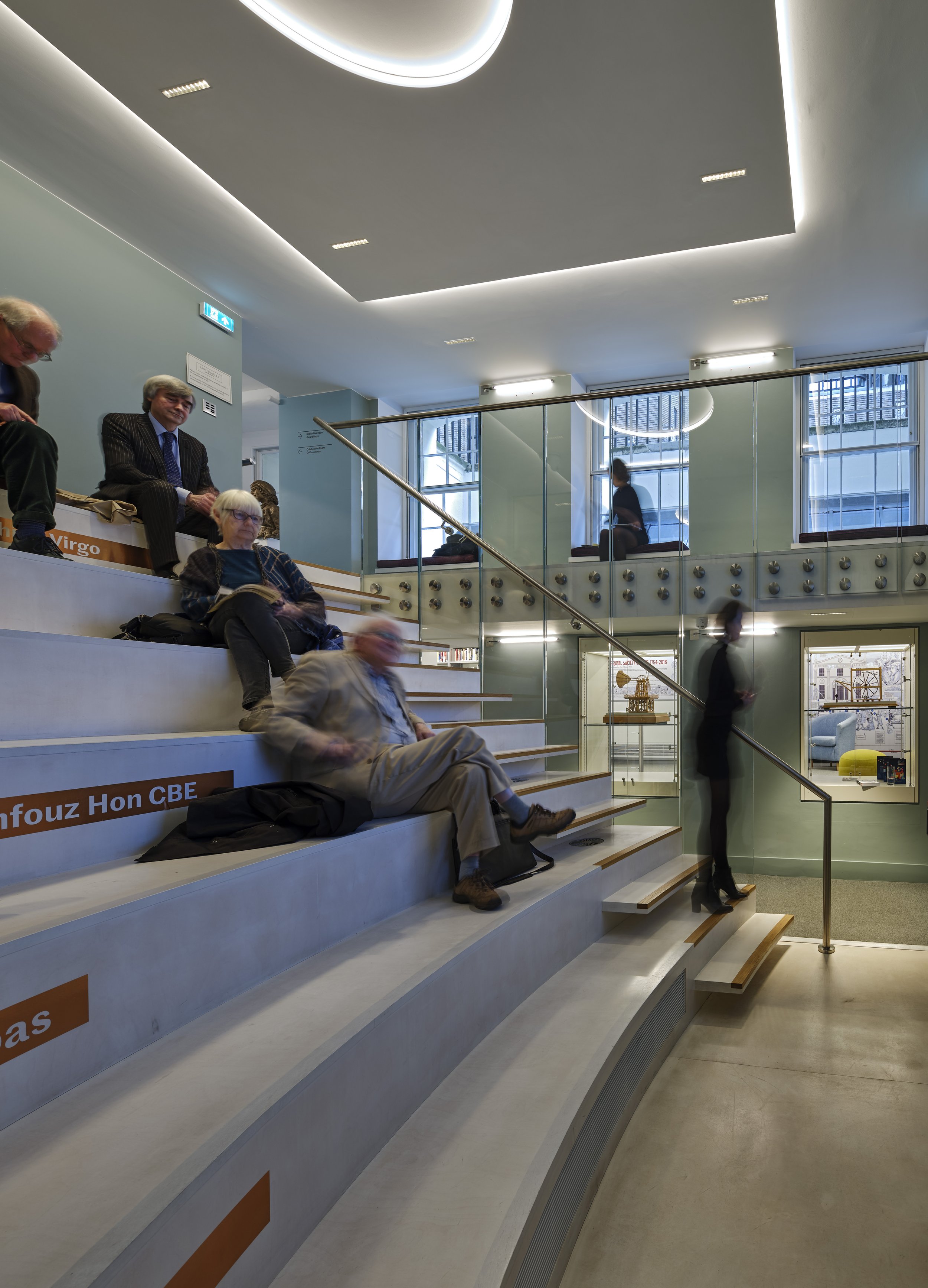 The RSA ‘House’ is formed from five terraced properties that have been connected over time in a manner that made wayfinding very challenging. A clear route to the coffeehouse from the main entrance was established, providing step free access to the existing lift, with a gentle ramp created to connect with the main staircase in a former lightwell.