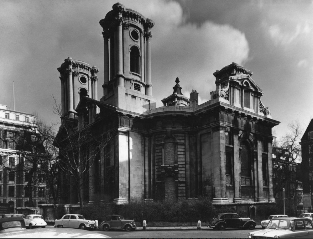 In 1914 the church was bombed by the Suffragettes. In 1941 the Hall was gutted from WWII incendiary bombs. Three of the four towers were heavily damaged. The church remained in ruins for over twenty years (received its Grade I listed status in 1958) until it was deconsecrated in 1964, allowing for its conversion into a concert hall. From 1965 to 1969, Marshall Sisson, and later Peter Foster (after Sisson’s death), spearheaded the restoration efforts to return the building as closely as possible to Thomas Archer’s original 1728 design.